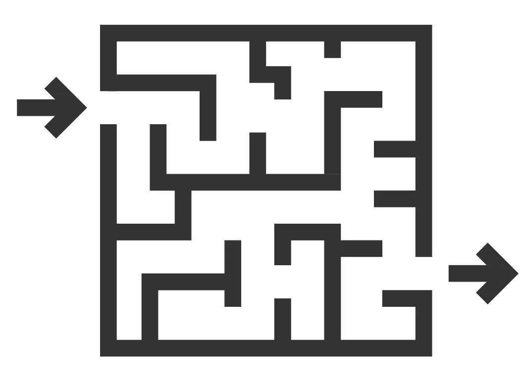 在确定了可能的解的范围的情况下,一个自然的想法就是搜索。搜索可以抽象为走迷宫: